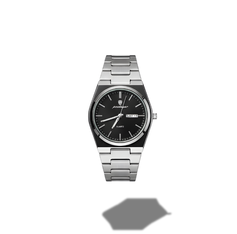 A refined black dial edition of the Poedagar premium finishing, full calendar functionality, and a bold stainless steel design for modern men.